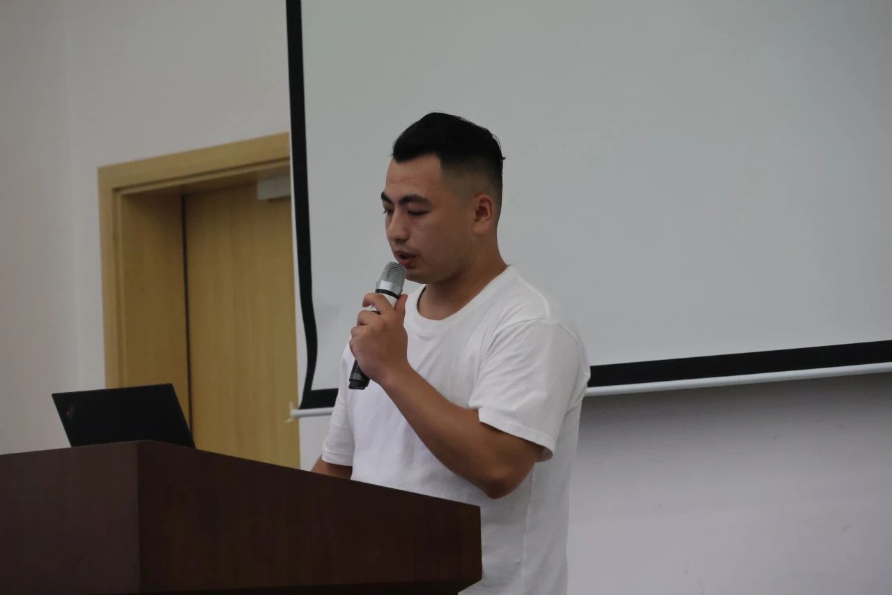 法茹克介绍了此次军训的基本情况和日程安排,细致强调了军容风纪、内务、训练场内外纪律要求等。法茹克强调,全连务必严格遵守纪律、服从指令。法茹克在会上指出,此次的军训也是作为爱国主义教育、国防教育的重要一环,因此需要同学们不能懈怠、认真对待。最后,为让同学们能更快的融入到军训生活,法茹克给学生详细解读了本次军训细则。
