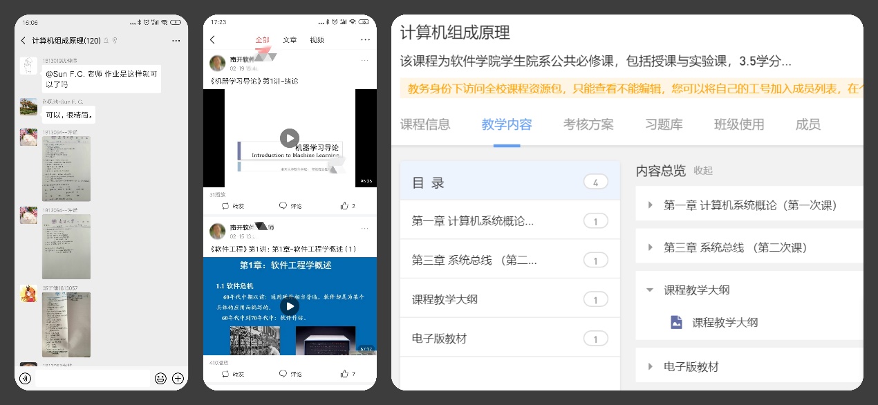 教学办和骨干教师也加入到课程群和教学活动中去,对在线教学中出现的问题和好的做法及时总结,向全体师生推广,做好疫情情况下的课程质量保障,积极贯彻落实“南开40条”,建设南开大学品牌“金课”。