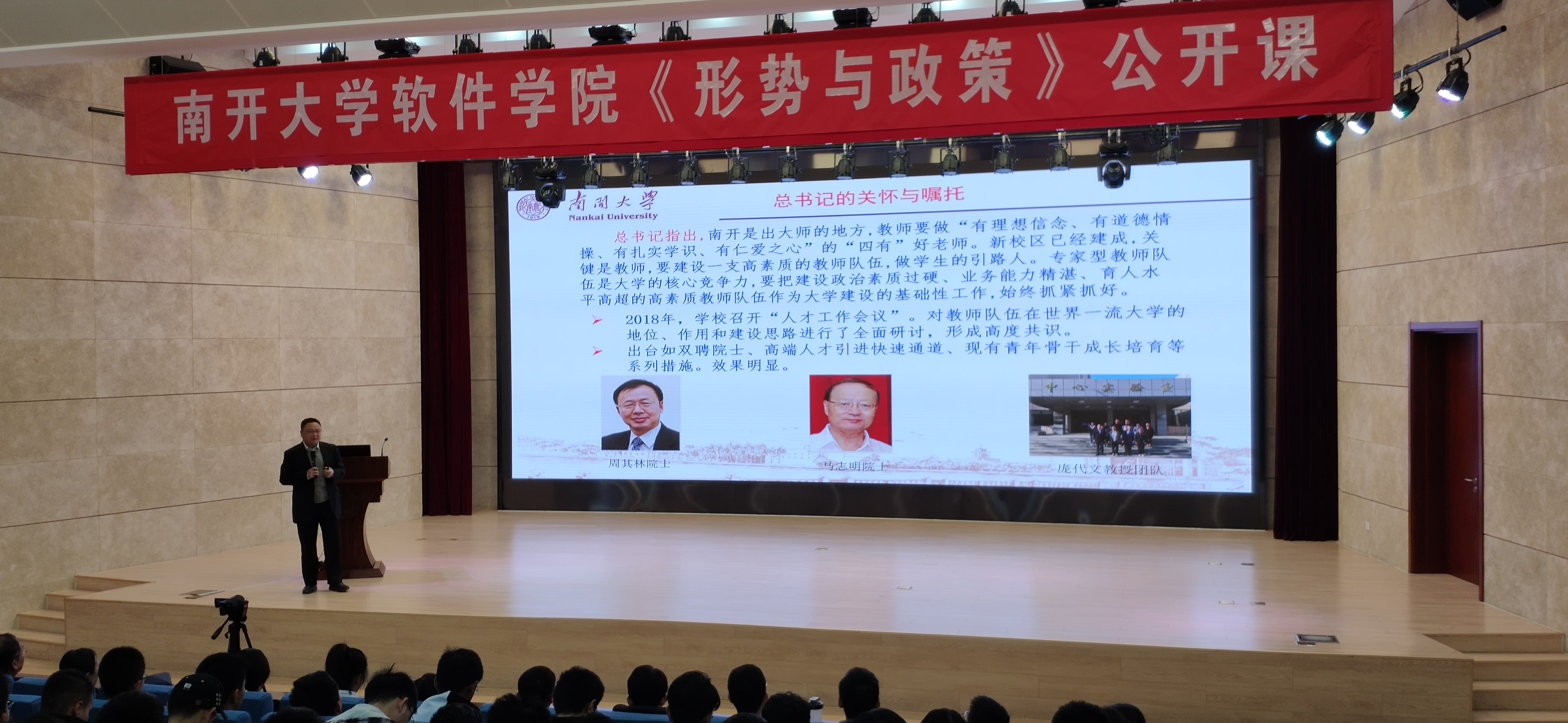 李靖副校长以深厚的爱国情怀、宽广的教育视野、深沉的责任意识,为同学们带来了一堂生动精彩的形势与政策课。同学们纷纷表示,通过此次课程更加了解百年南开的光辉历史和爱国情怀,更加了解当前教育形势和未来发展,同学们将牢记习总书记嘱托,将小我融入大我,为国家和学校的发展贡献自己的力量!