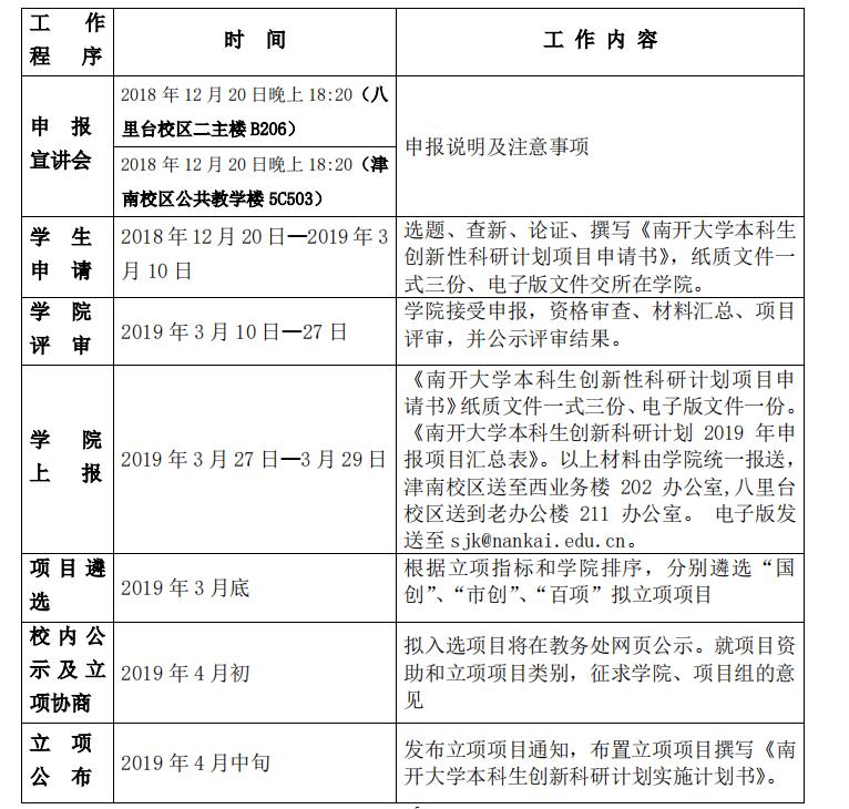 2019 年南开大学本科生创新科研计划项目申报、评审、立项工作启动,现将有关申报、评审事宜通知如下: