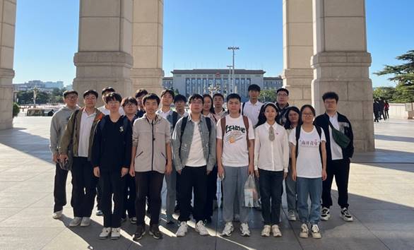 活动当天,党员们还前往天安门广场学习参观,瞻仰人民英雄纪念碑,观赏了天安门广场国庆花坛。在人民英雄纪念碑前,党员们深切缅怀了为中国人民和中华民族争取民族独立解放、人民自由幸福和国家繁荣富强献出宝贵生命的英雄烈士,激发了新时代学生党员的责任感与使命感。党员们怀着崇敬的心情在天安门广场合影,并为母校送上真挚的祝福。