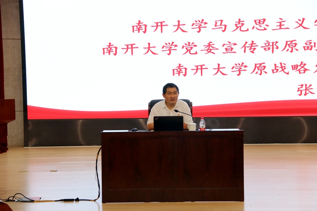 还邀请马克思主义学院张健教授给本科新生上了一堂生动且详尽的校史课。南开大学已经走过了一百多年不平凡的历程,从南开洼奠基“文以治国,理以强国,商以富国”,到八里台“知中国,服务中国”;从日寇毁校到被迫南渡,南开师生在西南边陲依旧刚毅坚卓、弦歌不辍;从北归复校艰难重建,到迎来新中国诞生建设新南开;从社会主义革命,到社会主义建设大潮中探索培育英才;从改革开放新时期科教兴国,到中国特色社会主义新时代创建“双一流”高校。南开大学的发展始终与国家民族命运紧相联,与时代社会的发展相偕行。作为新一届南开学子,如何将自身专业实力和国家长远发展结合起来,是始终需要思考的课题。